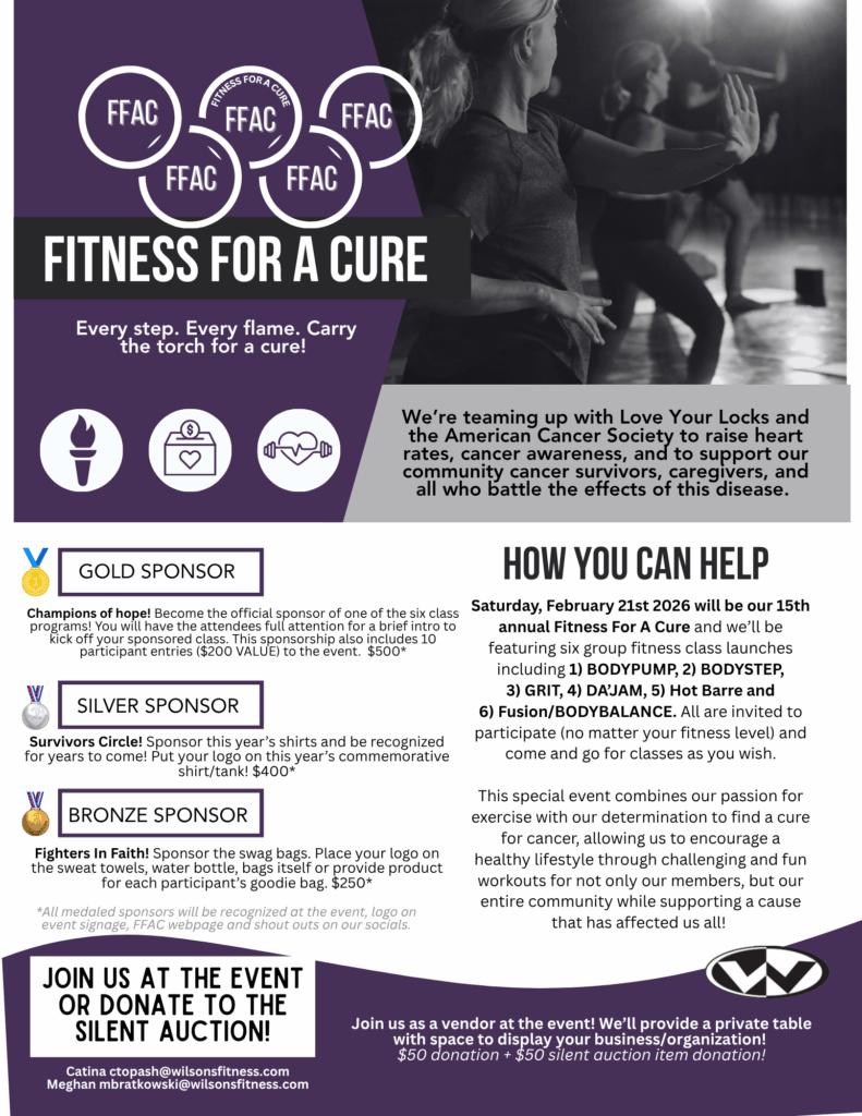 We’re raising heart rates, cancer awareness, some serious funds and supporting our community cancer survivors, caregivers, and all who battle the effects of this disease. This special 14th annual event (FFAC 2025) combines our passion for exercise with our determination to find a cure for cancer! We want to encourage a healthy lifestyle through challenging and fun workouts for not only our members, but our entire community!