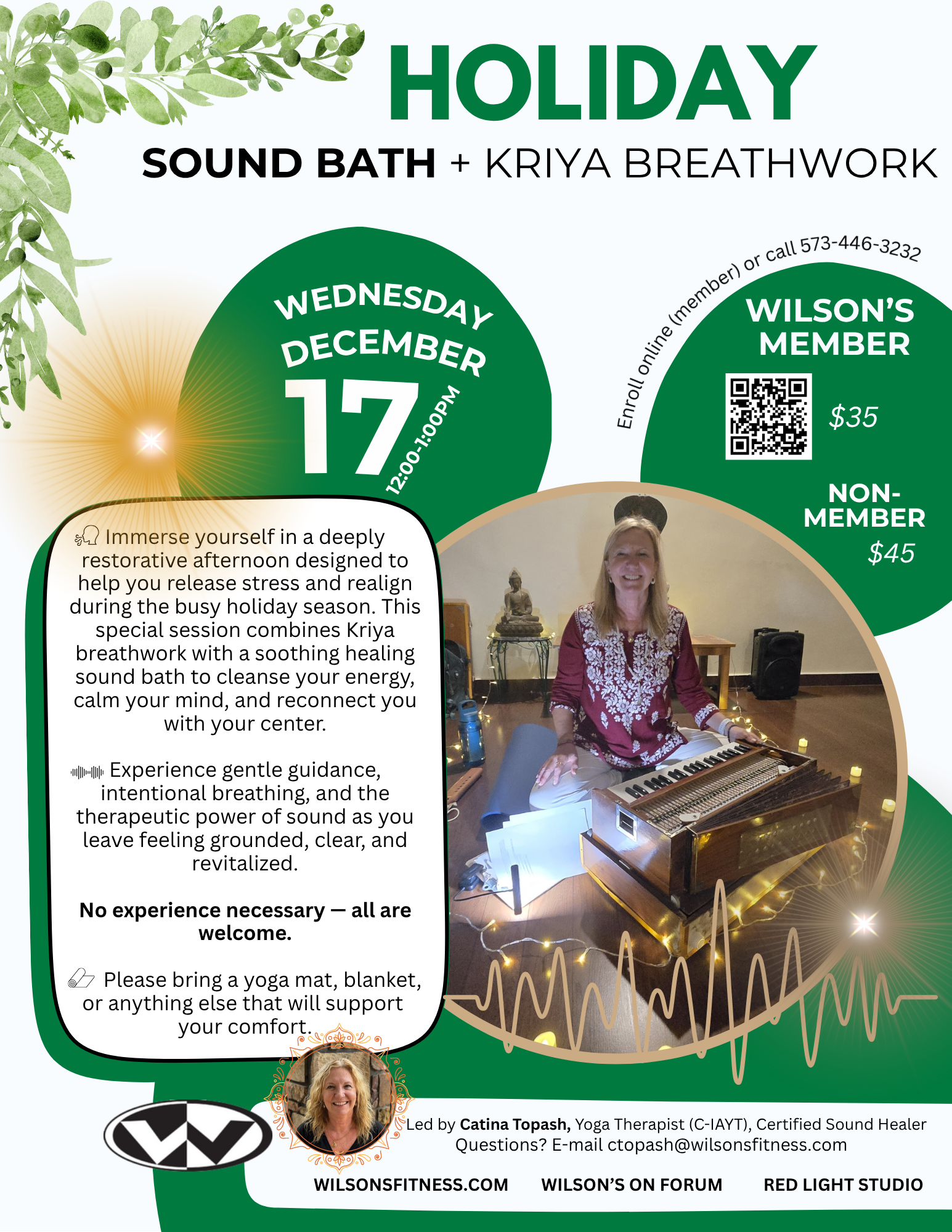Catina Topash is a Certified Yoga Therapist (C-IAYT), Sound Therapist, Biofield Energy Worker, Reiki Master, YogaFit Yoga Therapy faculty member, and a YogaFit Senior Master Trainer, holding more than 25 other certifications, including those from the American Council on Exercise and DK Body Pilates. Therapeutics in Sound Healing and Biofield Tuning are 2 trainings she has recently written as part of a 100-hour Sound Healer Certificate with YogaFit. Catina is the Wellness Director at Wilson’s Fitness and owner of Breathe@JJ’s Folly yoga retreat center. Catina offers yoga therapy, sound healing, sound baths, energy healing, trauma informed practices, and somatic therapies for individual clients and groups. Her passion for yoga and sound creates an atmosphere for vibrational healing