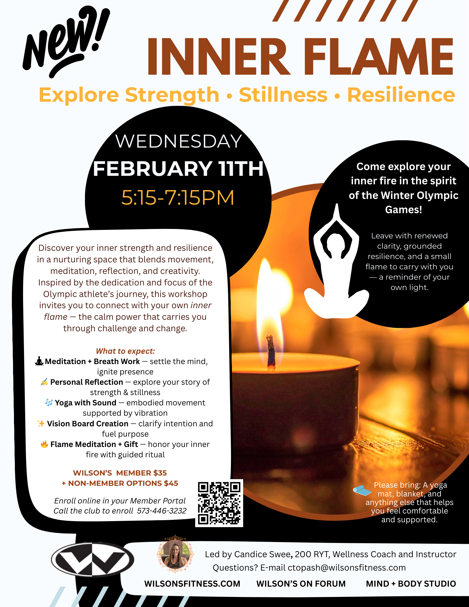 In 2022, Candice began her yoga journey with YogaFit, which has since transformed her life in countless ways. Earning her 200-hour Registered Yoga Teacher (RYT) certification in 2024, she is currently pursuing advanced certifications trauma-informed yoga (300-hour RYT), sound healing (100-hour), and yoga nidra (100-hour) through YogaFit as well as in Strength Training (CSCS).  For Candice, yoga has been a powerful tool for personal growth, confidence, and balance—helping her to be a better teacher, wife, and mother.
